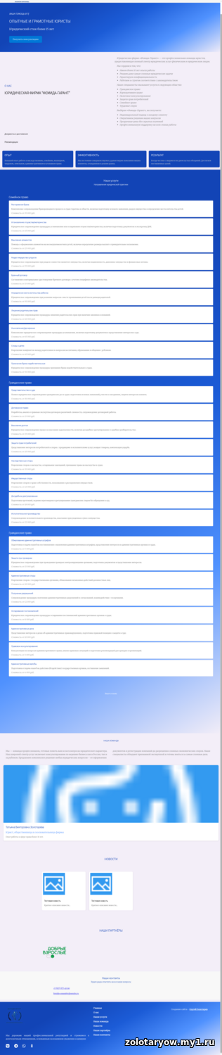 Сайт Юридической фирмы "Фемида-Гарант" был создан с целью предоставления профессиональных юридических услуг физическим и юридическим лицам. Я горжусь тем, что команда состоит из опытных юристов, которые обладают более чем 10-летним опытом работы в различных областях права. Основные цели сайта: