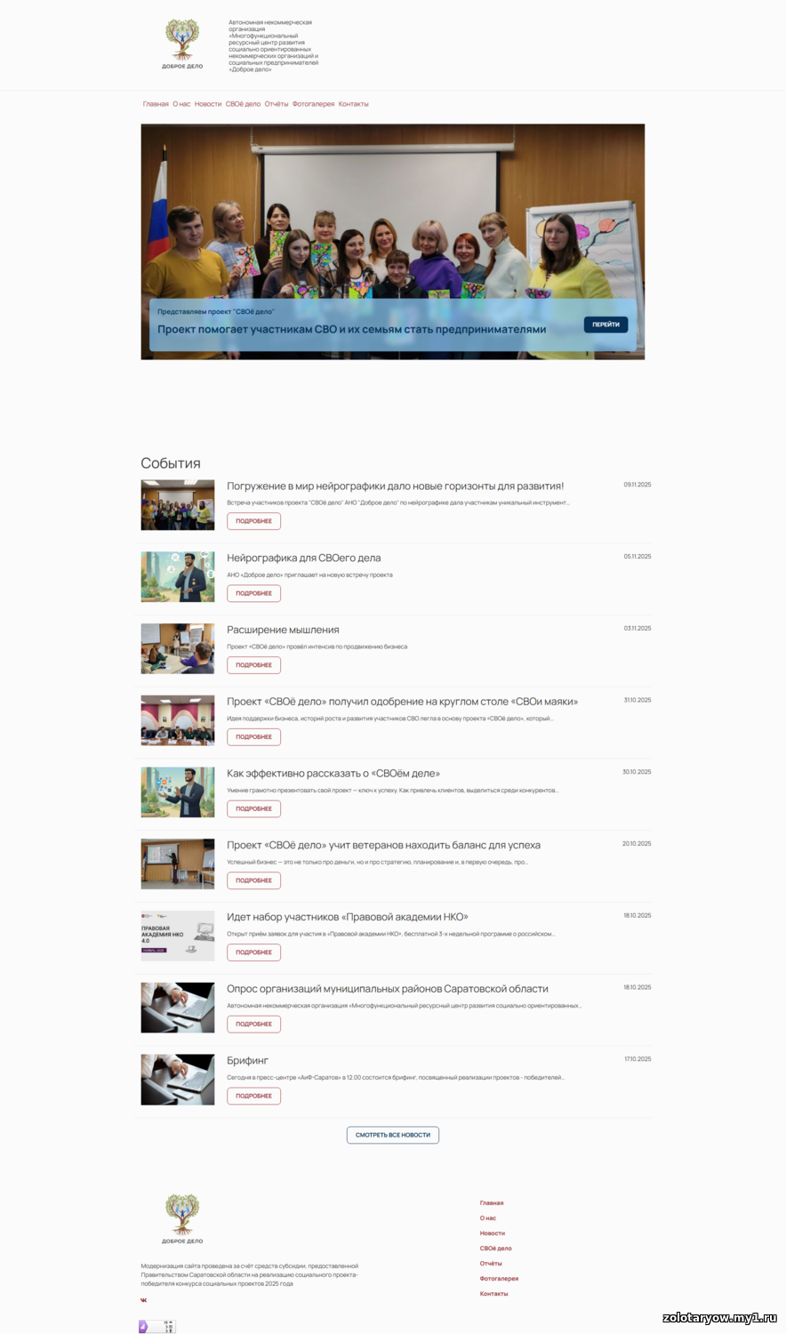 Модернизация сайта АНО "Доброе дело":